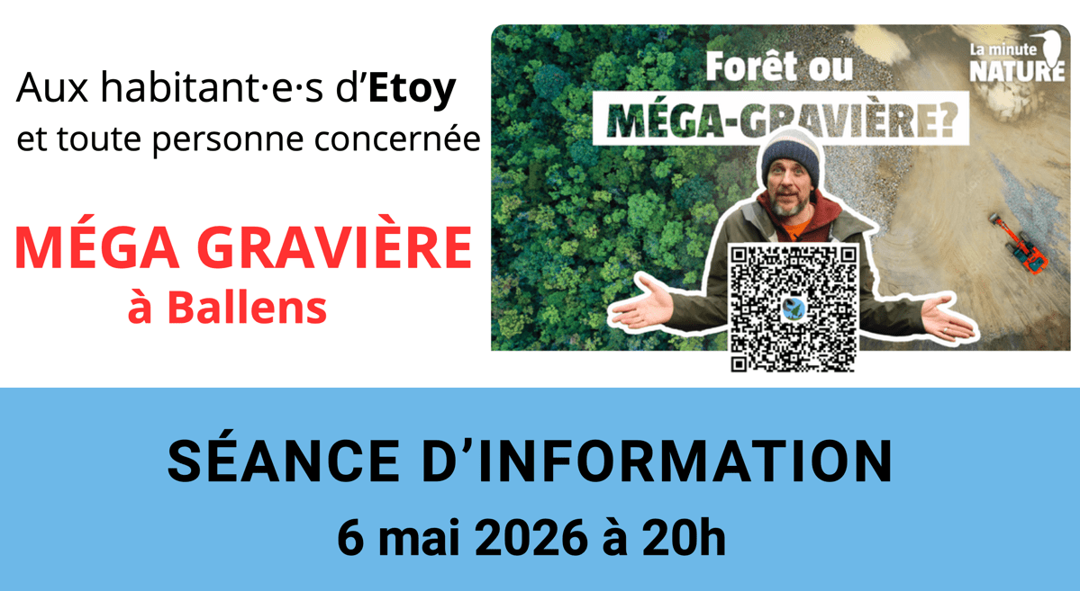 Nous continuons nos séances d’information avec une neuvième séance Info-Villages, après les… huit précédentes (vous suivez, vous suivez, c’est très bien) qui ont rencontré un grand succès. Cette fois, ce sera: à la Salle du Conseil de la Maison de Commune d’Étoy Mercredi 6 mai 2026, à 20 heures Si vous avez manqué les séances précédentes, ce sera … Lire plus